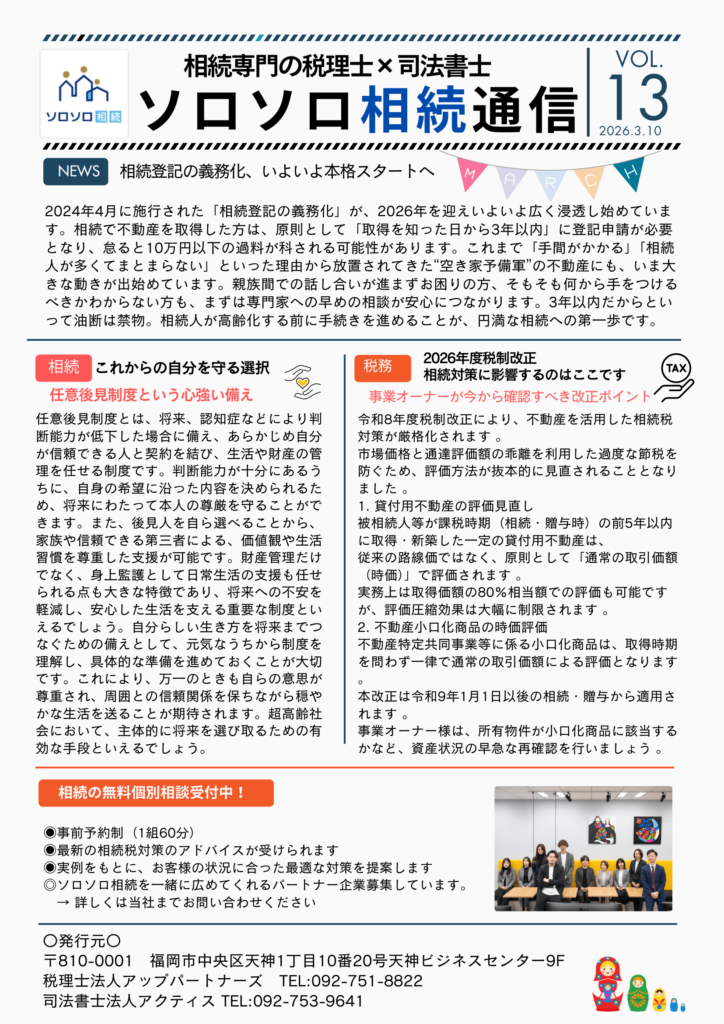 ソロソロ相続通信vol.13発行のお知らせ